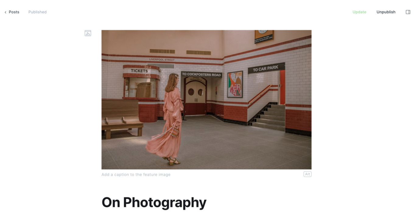 Beirut uses tags to separate content. Posts tagged work appear in the Work section; posts tagged writing appear in the Writing section. Each new post should have either the work or writing tag.
